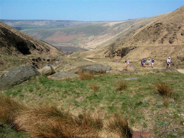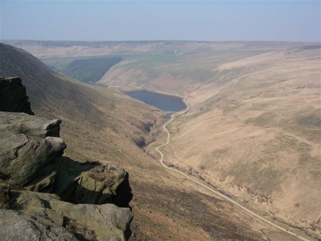 views over Sabden and Churn Clough reservoir as we negotiated