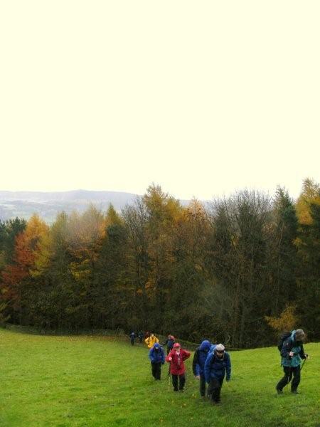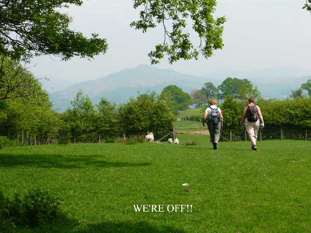 a heavy burst of rain. Undaunted ,we set off downhill, knowing,