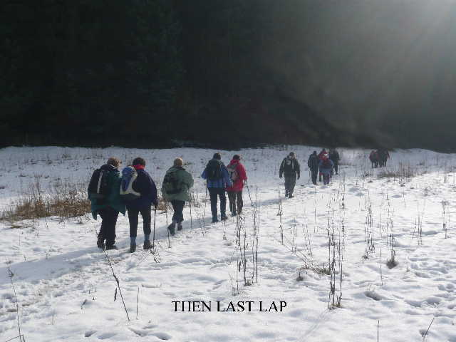 Off we strode into the gently falling snow to conquer the