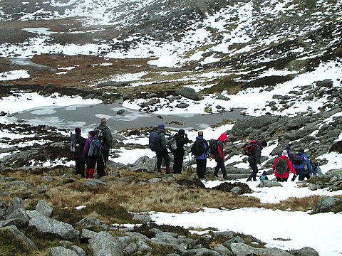 with the clag down on the high peaks. Led by Lewis, assisted