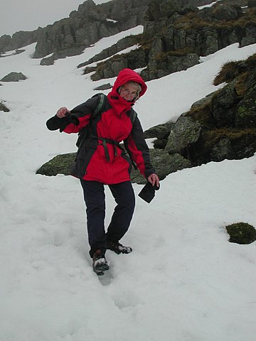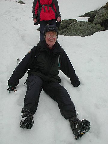 sledging down on our bottoms) and crossing snow fields. John