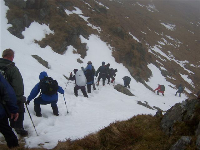 slipping on slopes above our heads, with two aborting their