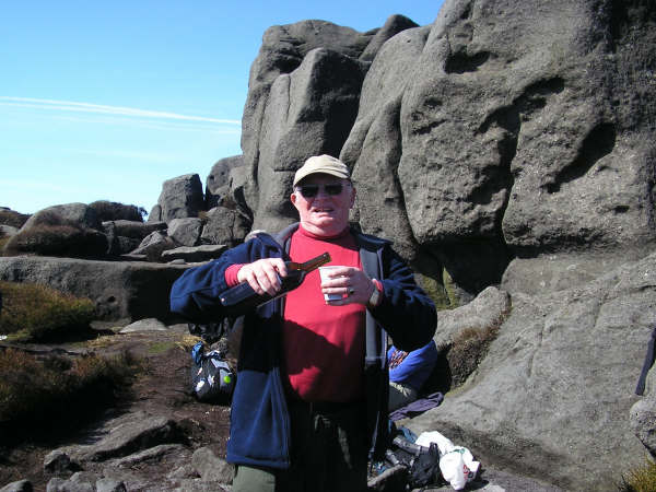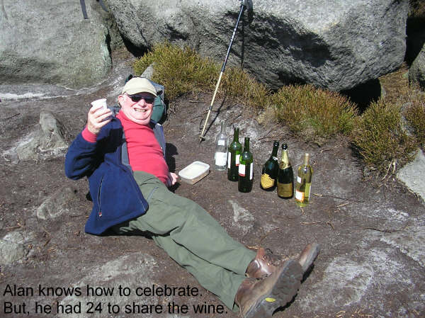 him to the summit to drink his health. Safely back down in